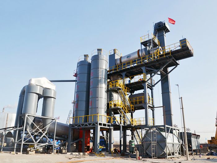 間歇固定式廠拌熱再生設備由回收料供給系統、烘干再生滾筒、熱回收料儲存倉、熱回收料稱量斗、除塵和煙氣處理系統及控制系統等組成。